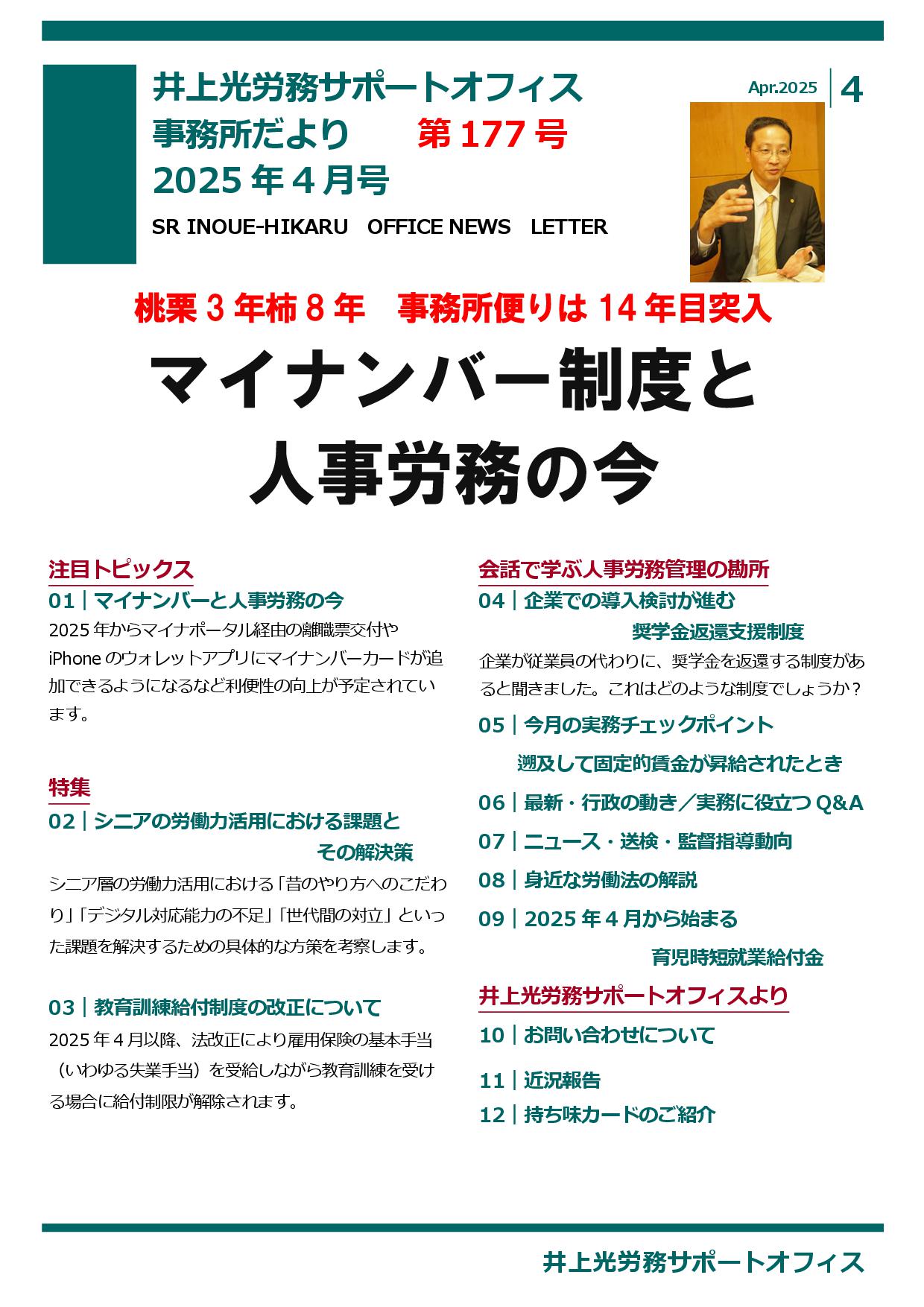 井上光労務サポートオフィスでは皆様のお役に立つ事務所便りを定期的に発行しております。